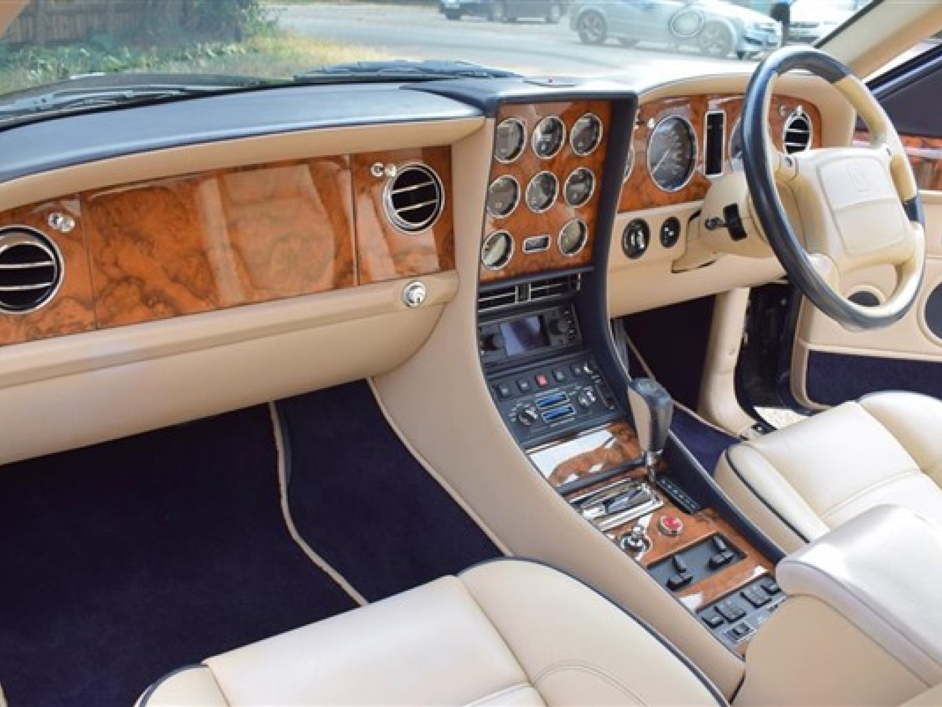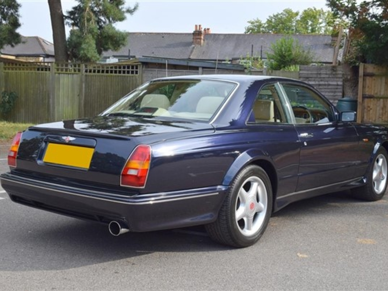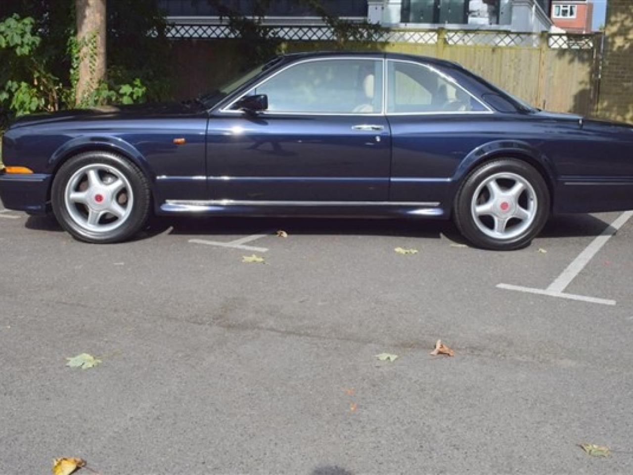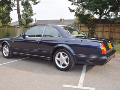 1997 P Bentley Continental T Wide Bodied. This very rare car is being offered for sale. Finished in Black Sapphire with 18 inch 5 spoke alloy wheels. The interior is Parchment with French Navy piping, with Dark Blue carpets with Parchment piping and Burr Walnut veneers. We have known this car for the last 6 years and it has been maintained to the highest standard regardless of cost. The speedometer was changed by Bentley at 22,899 miles, bringing the total current mileage to 65,829 miles. Immaculate condition throughout, a sound investment.
