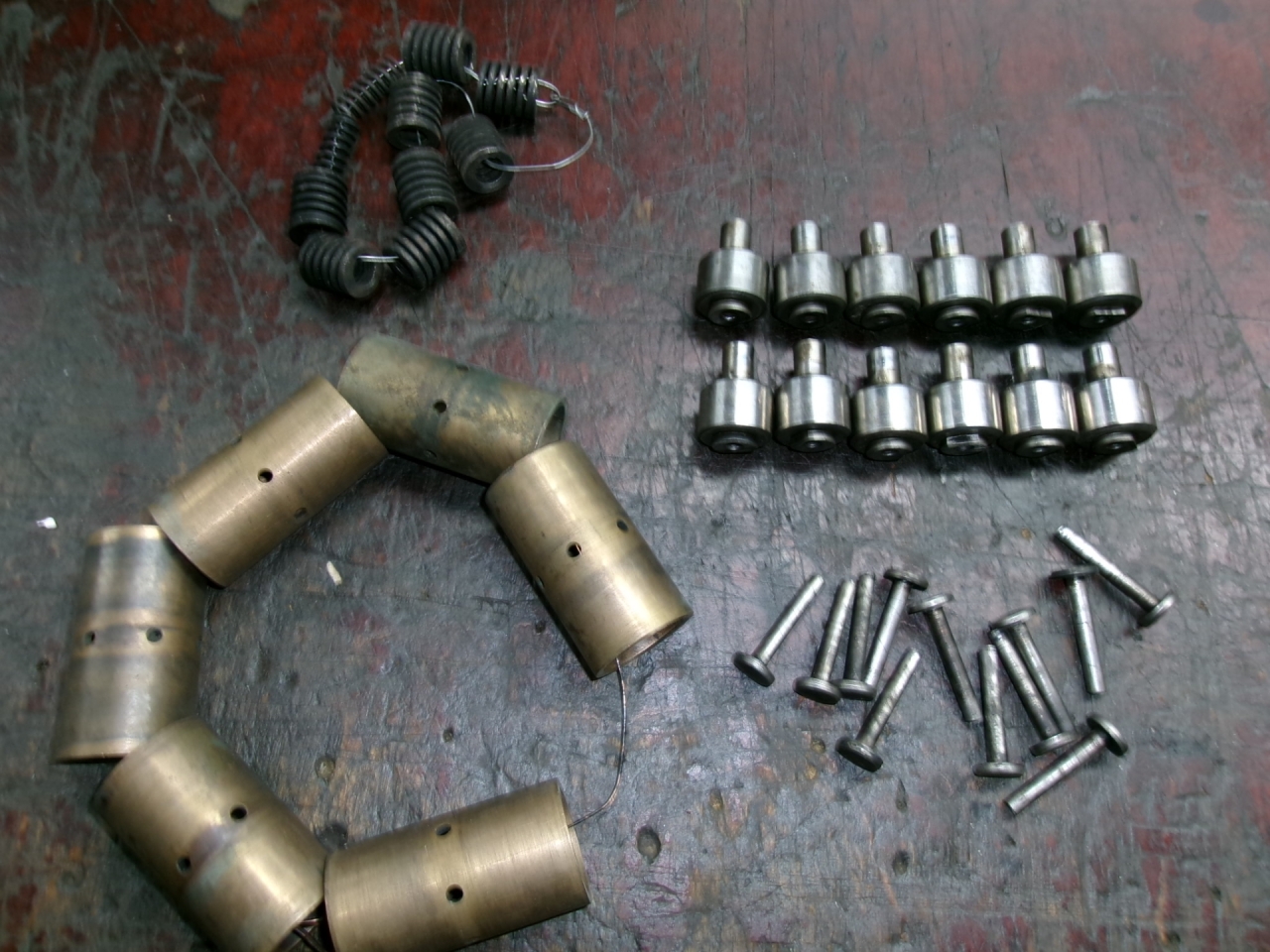 Used engine parts for Rolls-Royce Silver Ghost from around 1923, 6x big end bearings, 8x vibration damper springs, 12x camshaft rollers with bushings. Asking price € 150.00.