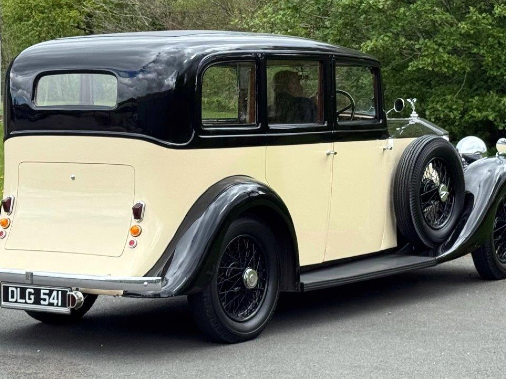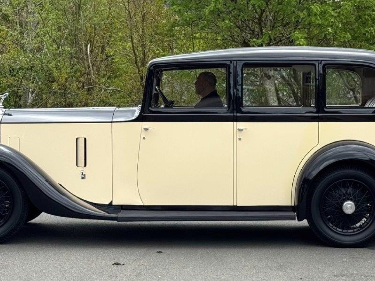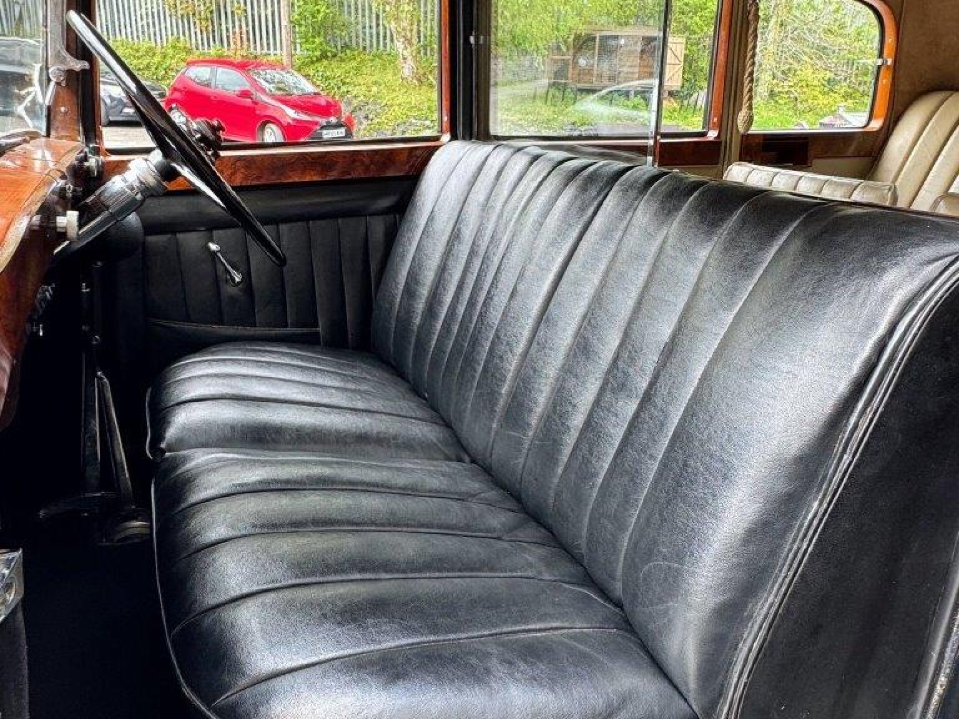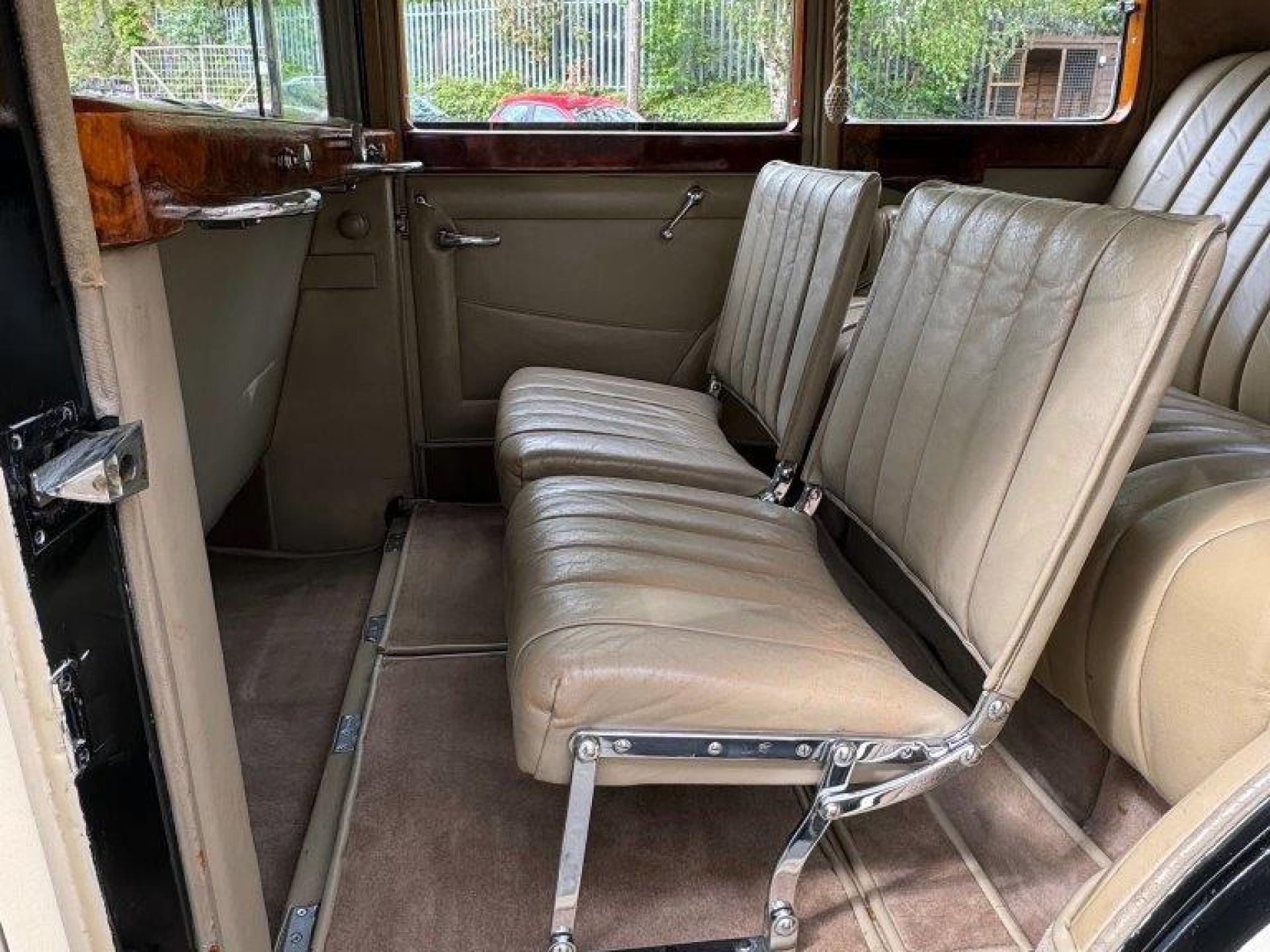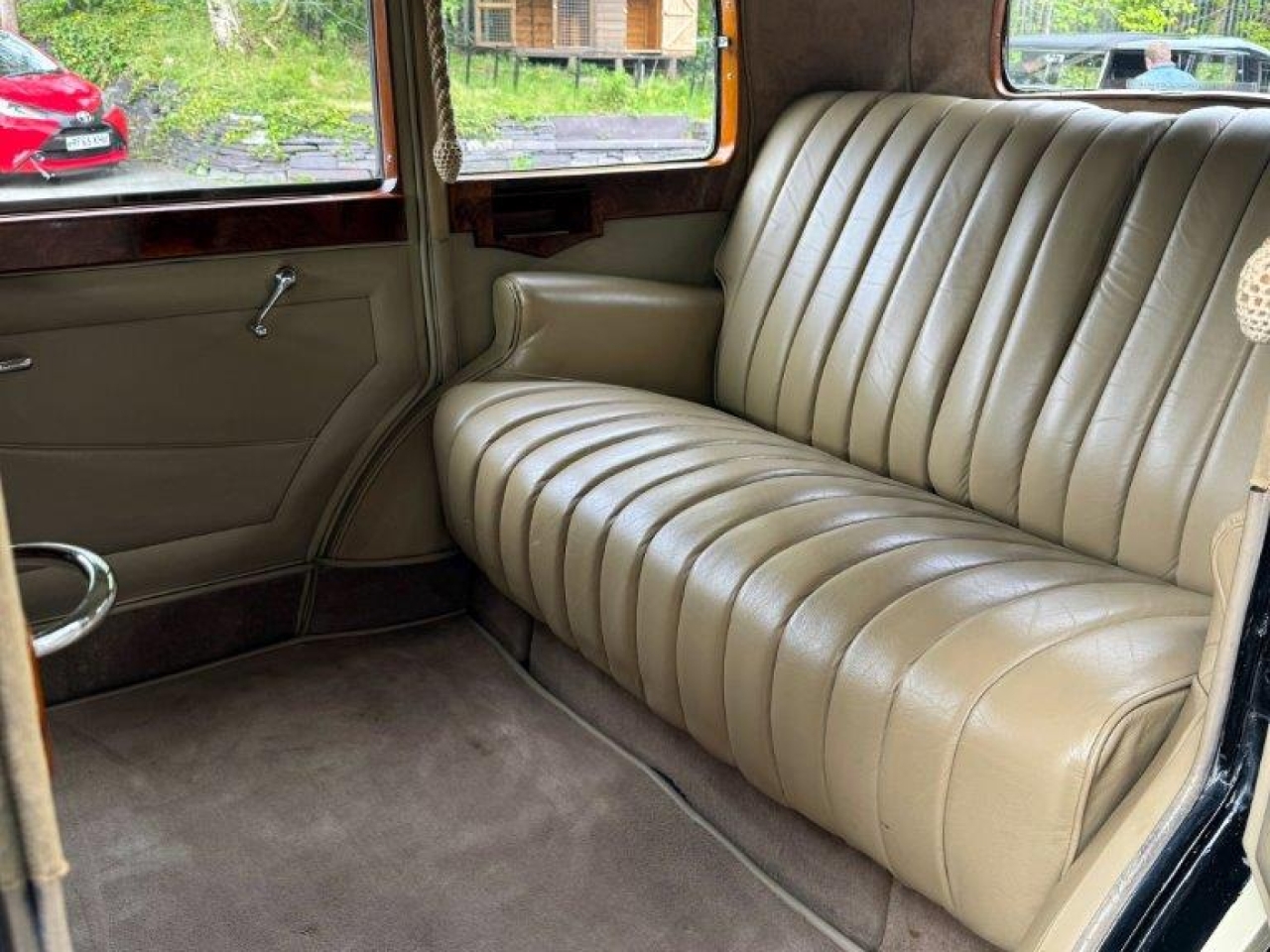 A very smart limousine, ideally suited to wedding hire use, and at the same time better than many others on offer, but also a good, spacious clean and tidy car for family fun. The car is sound in wind and limb, and the doors fit well, with no sign of ‘drop’, or movement. Paintwork is very presentable, with a deep shine, accompanied by impressive chrome plating, including the correct and attractive array of Lucas lamps (including rare and desirable QK596 headlights) and long-trumpet horns. The interior is also lovely, particularly the rear compartment of soft, high quality beige leather, excellent carpets, etc, all being fresh, correct and smart. Light and spacious inside. Mechanically, the car is all good, the engine has correct, even compressions, driving nicely, and offered MoT tested.