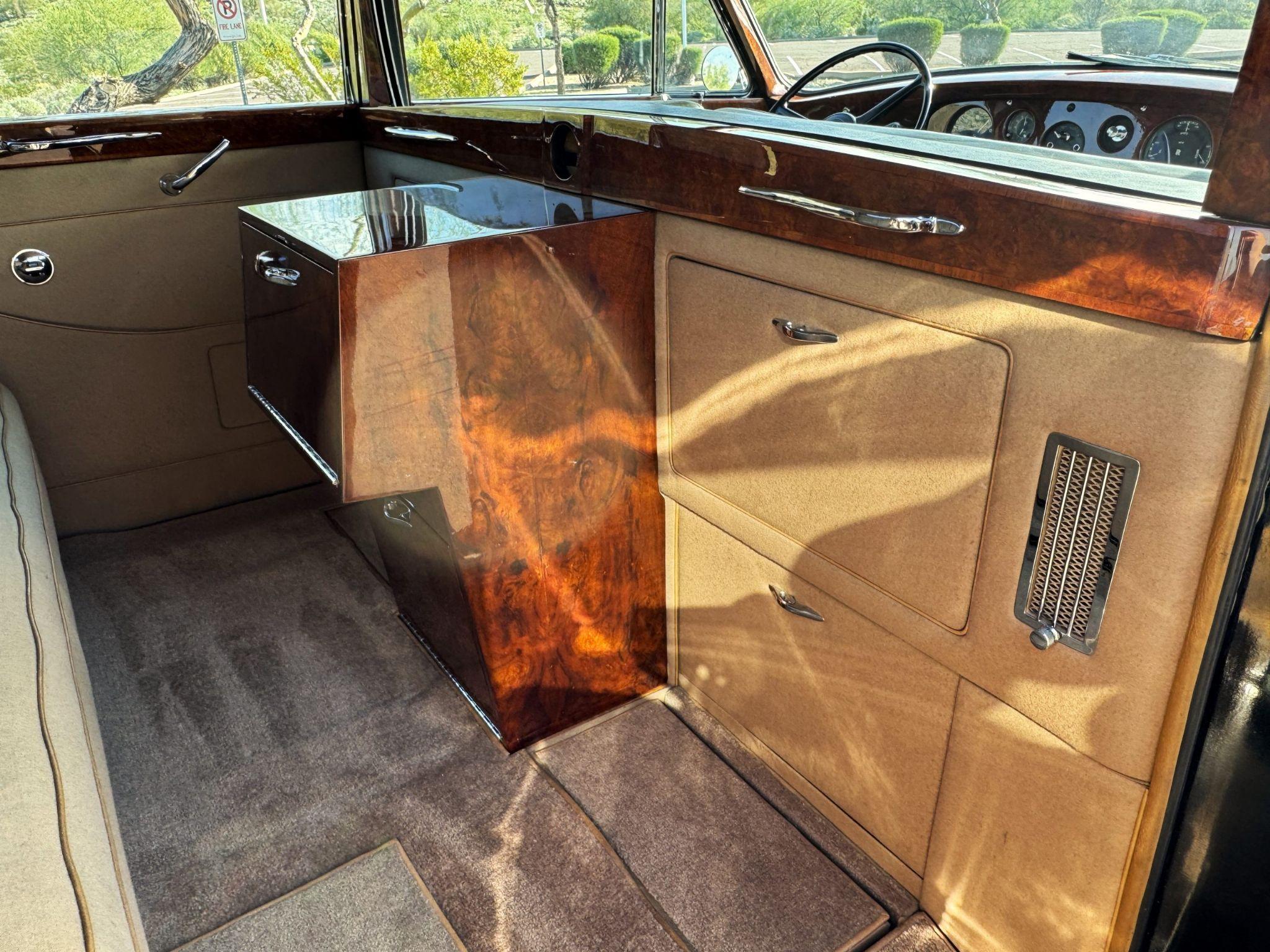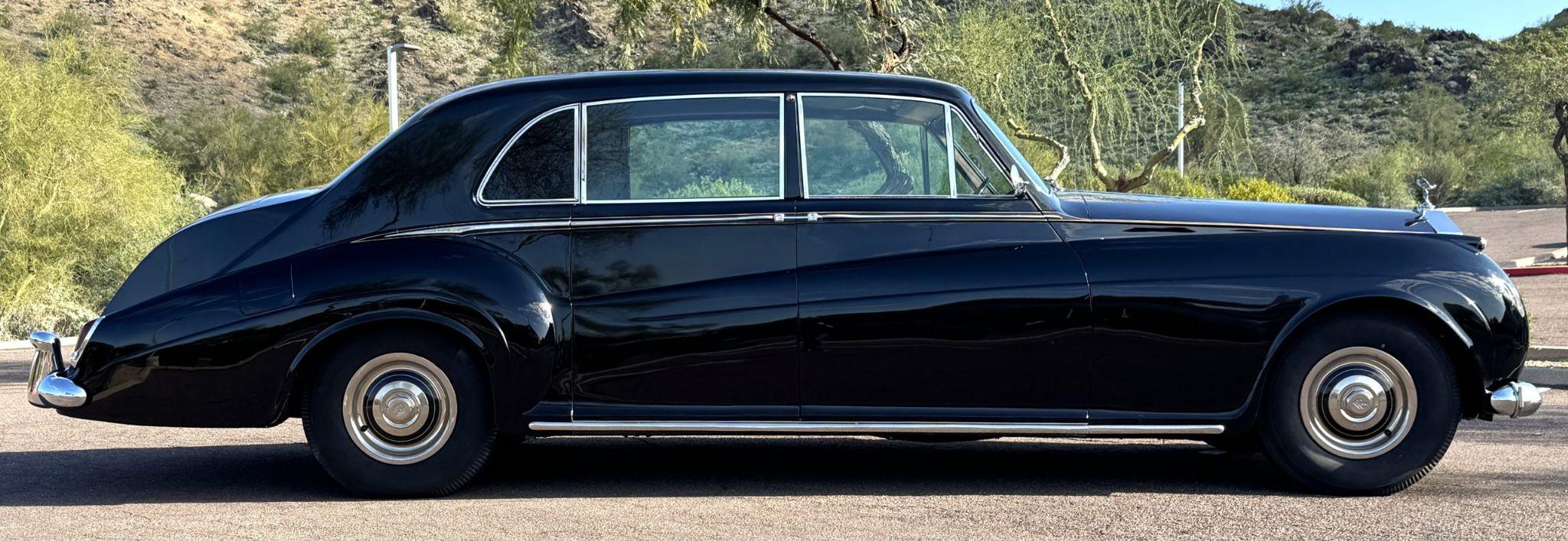 This 1960 Rolls-Royce Phantom V James Young Touring Limousine is a rare US delivery LHD example that has benefitted from a $100,000 mechanical and cosmetic restoration that was completed in January 2026. This Phantom V was specifically built as the 1959 Earls Court Show Car for James Young Ltd, ensuring that it is well optioned and received their top attention to detail. James Young Design No. PV22 is considered one of the most gorgeous designs on a Phantom V, with its beautifully sculpted and curvaceous lines. These are rarely found as a rust free, air conditioned US delivered car from new. Chassis 5LAS11 was ordered new through J.S. Inskip of NY through Jack Barclay, Ltd by Major-General Robert K Robertson for his home on Manhattan, NY. The Major-General agreed for the Phantom V to be used by James Young for the Earls Court Show as a pre-condition to its purchase. The Phantom was delivered on June 10, 1960, and was retained by him until his passing. The next documented owner was Garland Shell of Monroe, Maryland, who acquired 5LAS11 on July, 21, 1978 and retained it for the next 24 years. Mr. Shell had a successful advertising firm and was a member of the RROC. The Phantom V was then part of a large Rolls-Royce collection until acquired by Harry Clark and Classic Promenade in 2023. Mr. Clark, through the specialists at Classic Promenade, invested over $100,000 in a comprehensive sympathetic cosmetic and mechanical restoration, keeping as much originality as possible. The results are a gorgeous James Young Phantom V that can be shown at almost any concours event, or enjoyed on tours as well as for personal use. The livery is formal and stately in its original Black paint with complementary tan pinstripes. The paint is about one-third original and two-thirds repainted and the shine and luster are excellent. The stainless steel and chrome trim are overall in excellent condition. The Lucas driving lights and rear mounted color matched TV antenna accessorizes the Phantoms stunning exterior. The Rolls originally was ordered with white walled tires and is presently fitted with blackwalled bias ply tires. The next owner can decide to update it with radials, add whitewall tires or keep it as it is. The interior is in overall beautiful condition. All of the burl walnut trim has been painstakingly restored to showroom condition. The chauffers compartment is finished in Black leather that is very soft and supple with normal creases with age. The stereo has been updated with a more modern system. The rear passenger compartment is all original tan wool broadcloth with complementary tan leather piping. The upholstery is in excellent original condition with no soiling. The two rear facing jump seats allow for a total of seven passengers. The tan Wilton wool carpeting is also in very nice condition. The center mirrored cocktail cabinet contains an original crystal decanter and two crystal glasses. Above the cocktail cabinet is a separate compartment holding the Television. Twin reading lamps, twin vanities and a Seth clock complete the amenities. James Young coachbuilt Rolls-Royces always exhibit the most extraordinary book matched burlwood finishes. This example, being built for their Earls Court exhibition, is just gorgeous. The engine compartment and chassis have been detailed and painted as needed. Great care was invested into making this a wonderful driving Rolls-Royce. The 145-inch wheelbase make for a wonderfully smooth ride, while the venerable 6.23 liter V8 is quiet and powerful. This Phantom V comes complete with extensive factory records, ownership history, an Owners Handbook, large and small tools, jack and spare wheel. Also included in the sale are the extensive restoration receipts. For more information and details, please call or text Kendi Brown at 1.623.404.9042 or email us at sales@classicpromenade.com . This 1960 Rolls-Royce Phantom V Limousine by James Young is available for inspection at our showroom in Phoenix. We are pleased to offer FaceTime or WhatsApp live video inspections, and we help coordinate shipping worldwide. We also have financing partners if you are interested in financing.