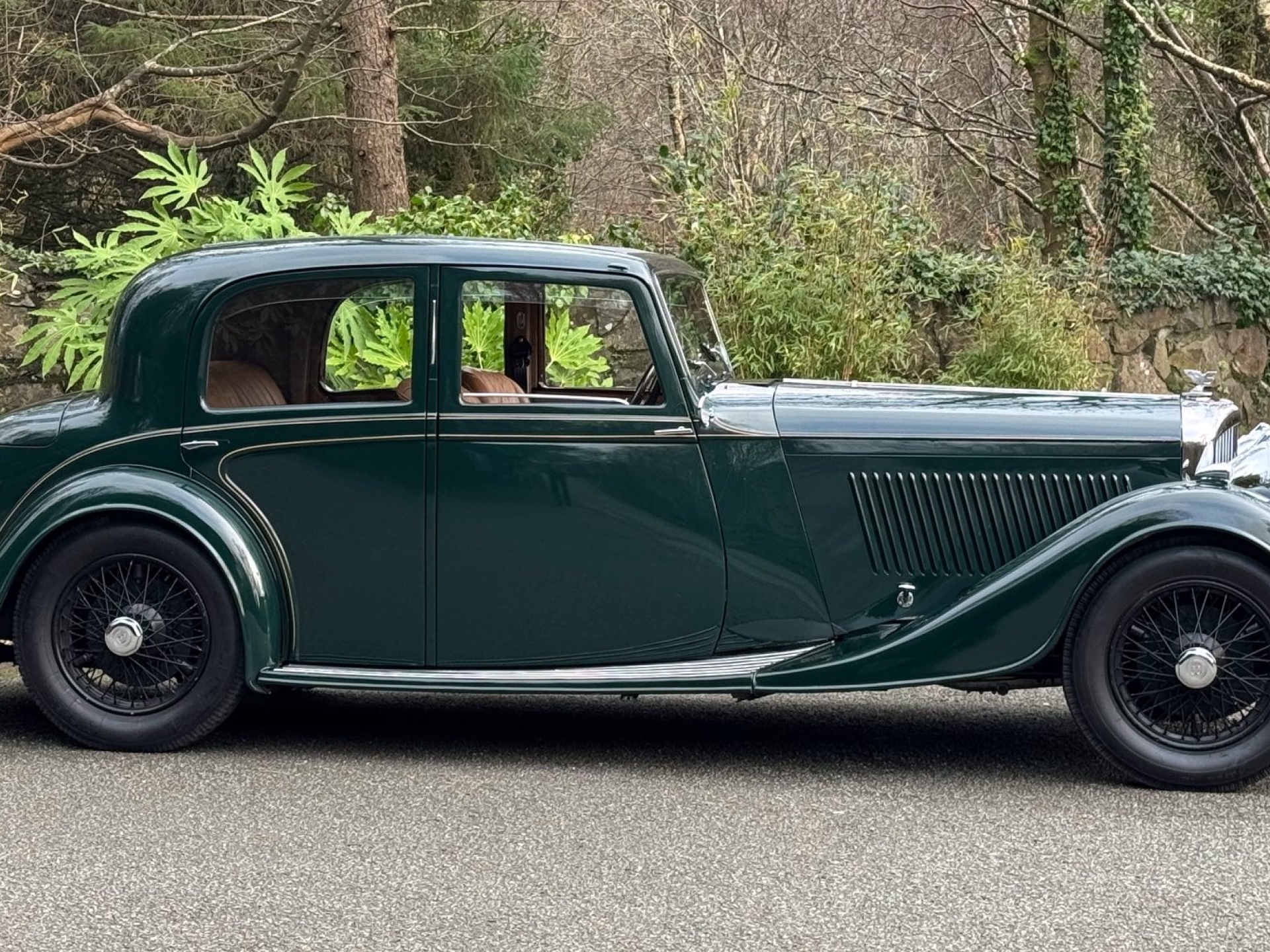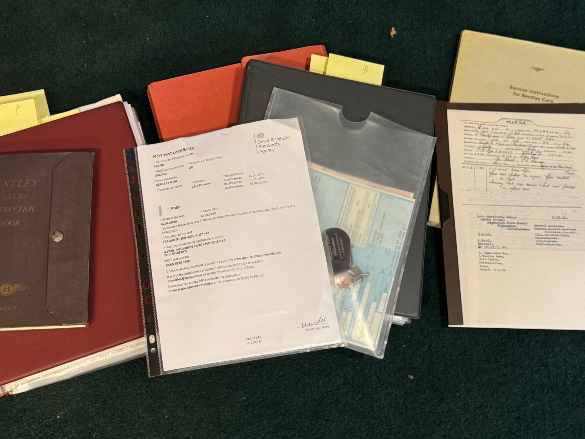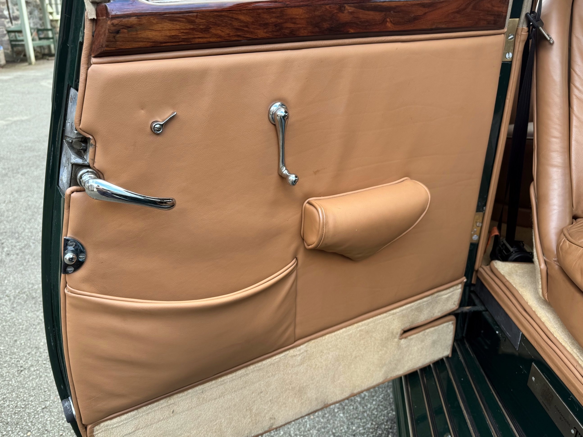A particularly handsome car, very attractively finished in dark green with tan leather interior, and in lovely, smart and sharp condition. The paintwork is to a high standard, the leather is excellent, as is the headlining, and the interior wood veneers are particularly lovely, with a superb finish. Features include P100 ‘bullseye’ headlights (unusual for a Derby Bentley) and handsome ‘trouser crease’ wings. The car comes with a significant maintenance and repair history file, two large folders worth, going back to the 1980s, showing a great deal of expenditure, together with various literature, and an original handbook in lovely condition. There is also a selection of spare parts included. It is apparent just from looking at the car that it has been well cared-for. Running and driving very nicely, and fitted with overdrive, which really improves long-distance cruising, making the experience much more relaxing. Also fitted with three-point inertia reel seat belts, which is unusual for a coachbuilt car. MoT tested until January 2027, serviced, and ready to go!