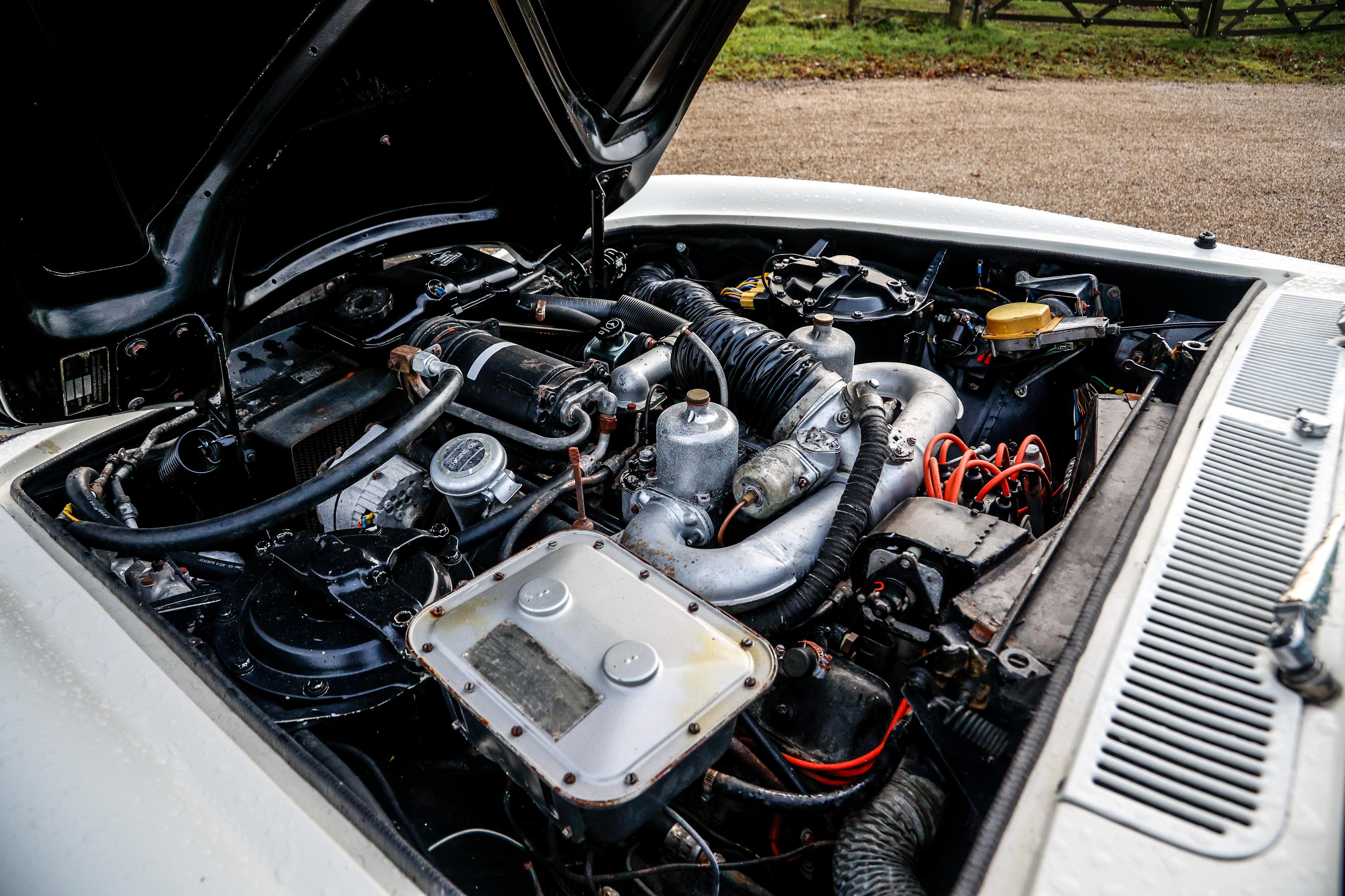 The fully functioning electric roof also matches the interior and presents in a mid-blue vinyl. To each corner, all wheels and tyres are in good condition with tread tested and found to be well within limits. The chrome bumpers and trim are also all in very good condition throughout. The dash benefits from a full complement of dials with no deterioration within the woodwork including the steering wheel. Radio 4 comes courtesy of a modern JVC head-end with speakers surreptitiously dotted around the interior. With little recent paperwork to speak of, this represents a perfect opportunity to begin a new life. Consigned by Edward Bridger-Stille