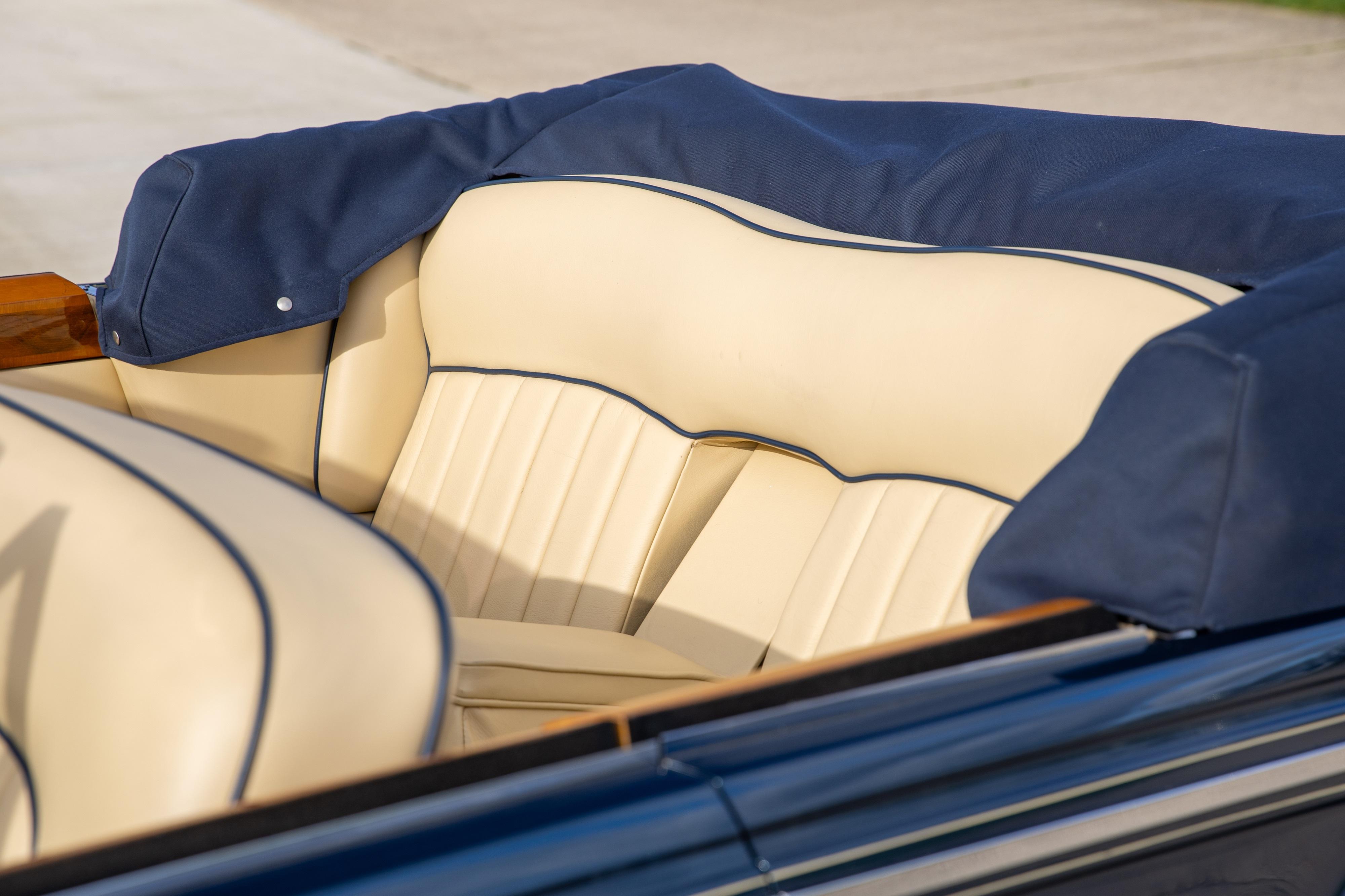 Originally registered on 27th May 1964 this stunning Silver Cloud III is finished in the delightful colour scheme of Athenian Blue, with Magnolia hide piped in French Navy Blue with Royal blue carpets. The power hood is finished in blue mohair and operates exactly as it should. The fastidious and knowledgeable vendor has ensured the work carried out on this Rolls-Royce has been carried out to the highest standard. It is estimated the car has only covered around 100 miles since completion. There is a comprehensive range of photographs available to confirm the extent of the work carried out. This could effectively be classed as a new car delivered 60 years late, such was the extent of the restoration. The car was completely stripped prior to the roof modification, the adaptation was carried out alongside an original Mulliner, which was used as a template, along with Mulliner drawings, ensuring this example is as close to an original one as possible. To drive a Silver Cloud III is one of life's pleasures, to drive a drophead in unmarked condition takes the experience to a whole different level. Even today, it remains one of the most desirable classic Rolls-Royces-an enduring icon of British automotive excellence and aristocratic motoring style. Consigned by Stewart Banks.