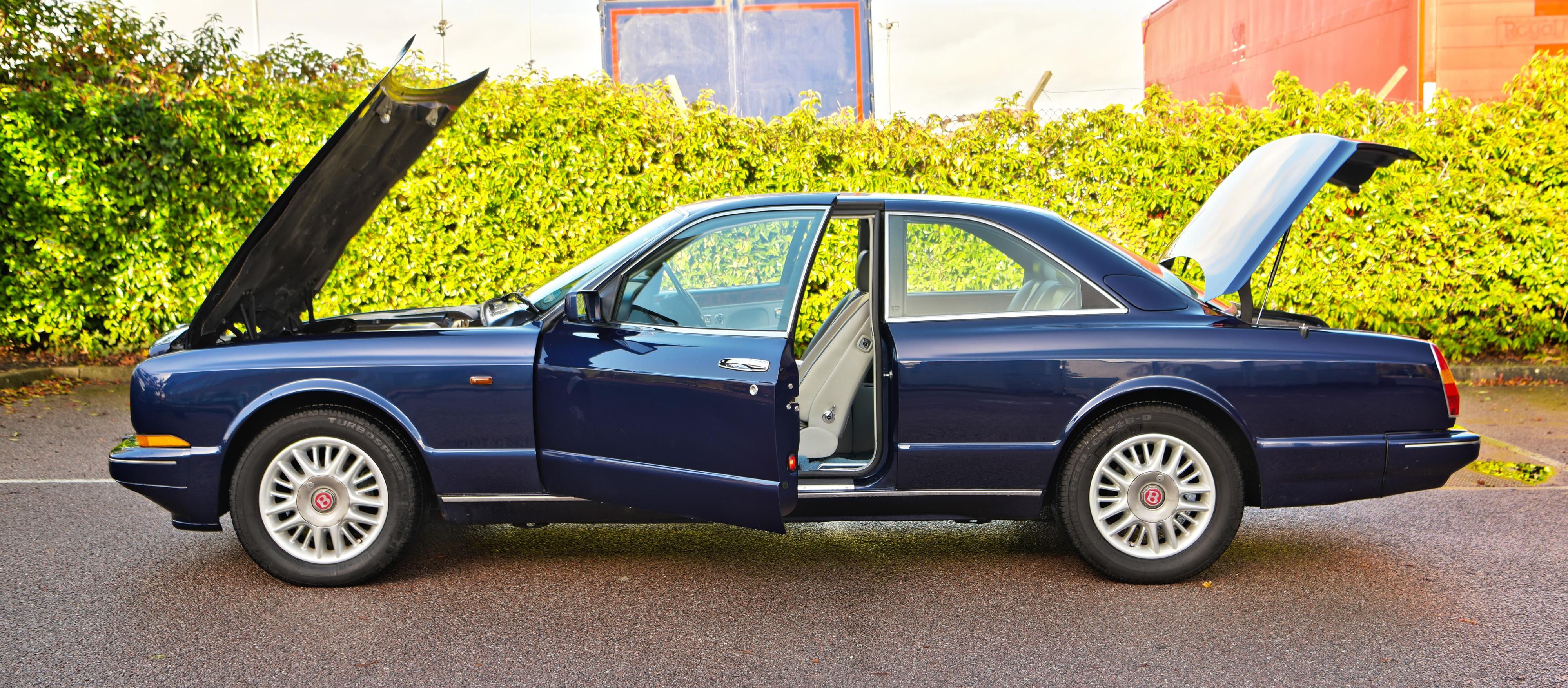Originally registered on 1st January 1996, this Bentley presents really well in the great colour combination of dark metallic blue with light grey interior piped in blue. The original service book is present and has 17 stamps, confirming this to be a well-cared-for example. The interior of a Continental R is an area of beauty, with ample leather and copious amounts of burr walnut. Described by our vendor as driving with no known faults, this Bentley is a great opportunity to purchase one of the finest designs to come out of Crewe, and stands as a symbol of 1990s British automotive opulence; powerful, exclusive, and unapologetically grand. Consigned by Stewart Banks