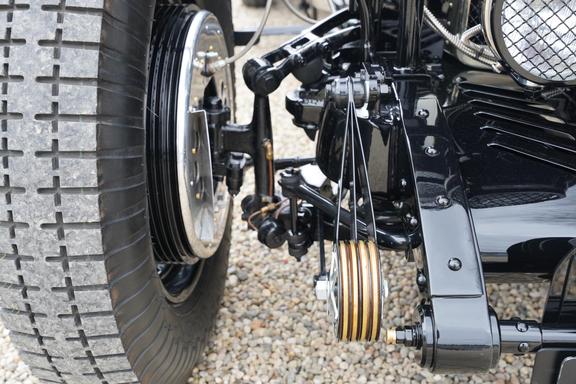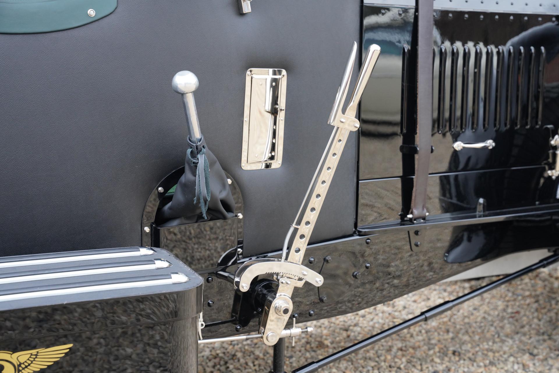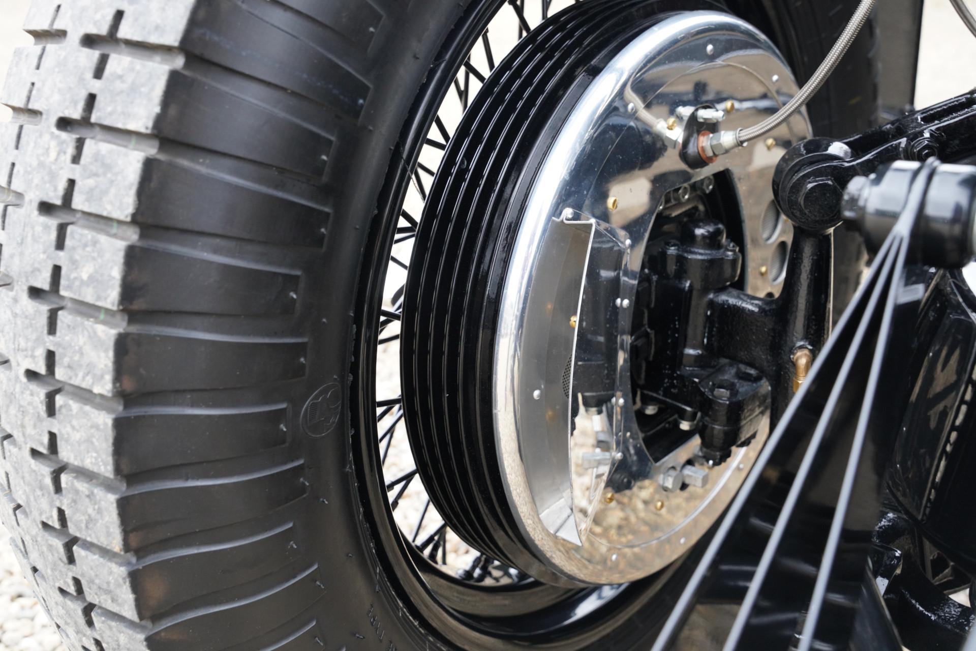 Now, getting up to a considerable speed in such a 'new' Bentley is possible, and to keep it in this insane new condition, it's nice that the speed can also be brought under control in a controllable manner. Hydraulic drum brakes at the front and mechanical drum brakes at the rear ensure this. A mechanical brake booster makes braking children's play. These drums are housed in beautiful 21” spoke wheels with 21×7.00 tires and knock-off hubs.